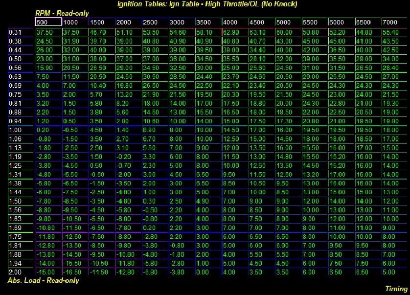 I believe that in order to avoid codes with the SB, you have to incrementally advance timing such that the ECU does not see a sudden jump in crank speed. In other words you have to ramp up the timing, only 3 deg difference from cell to cell or less. |