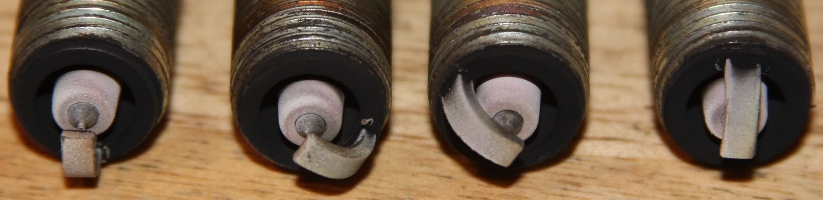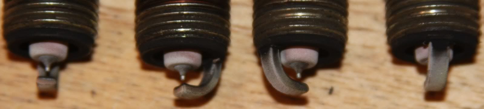 | Not Ranked : 0 score happen to check the gap of the old plugs? they look good from what i can tell (with the exception of the additive coloring), but there seems to be a c hair of dry fouling on each which can sometimes be due to the resistance of the plug changing. if you removed em at 27k, it would be possible that the gap grew .03-.06mm which may explain it or have you ever experienced spark blowout? that could also be a cause There is some pitting on all 4, especially on the ground electrode, but thats normal on any hard working engine. Plug gets hot from the spark, small bits blow away, life goes on in theory, running a step colder plug should reduce that |