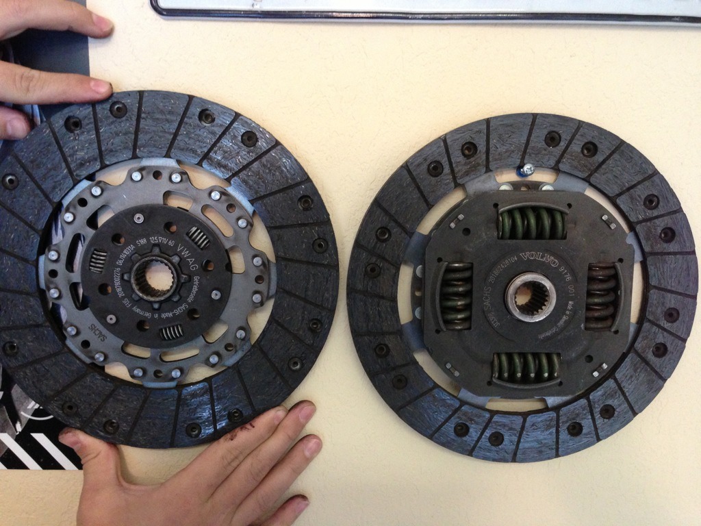 The lighter assembly is the clutch itself. Ideally by moving the dampening springs to the flywheel the clutch disc can be made either without the springs or with much smaller ones since it doesn't have to dampen nearly as much of the torque shock. Our clutch does have springs - not sure if it would be lighter should the flywheel be solid. http://www.golfmk6.com/forums/attach...5&d=1362450095 |