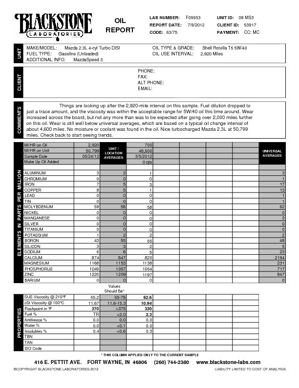 Mazdaspeed 3/6 UOA Results Been 3 weeks since I sent in my last Sample to blackstone, and no word... Looks like USPS lost it or something... At least it wasn't the Amsoil sample... |