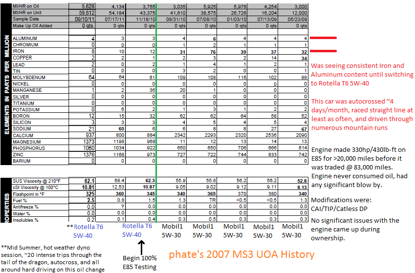 (Thread Starter) | Not Ranked : 0 score This is my latest UOA; I've owned the car since new and I've run Mobil 1 5W-30 since the first oil change at 5,000 miles. I switched from a 5,000 mile to a 7,500 mile change interval at 69,000 miles and I switched to Mobil 1 5W-30 Extended performance at 114,700 miles.