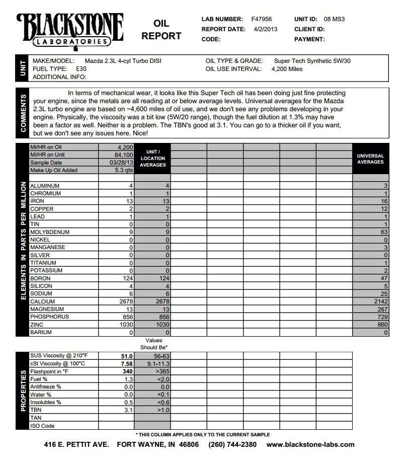 | Amsoil XL 5W30 7,100 miles Mazdaspeed 3 turbo - Bob Is The Oil Guy | This thread | Refback | 04-20-2012 03:28 AM | |