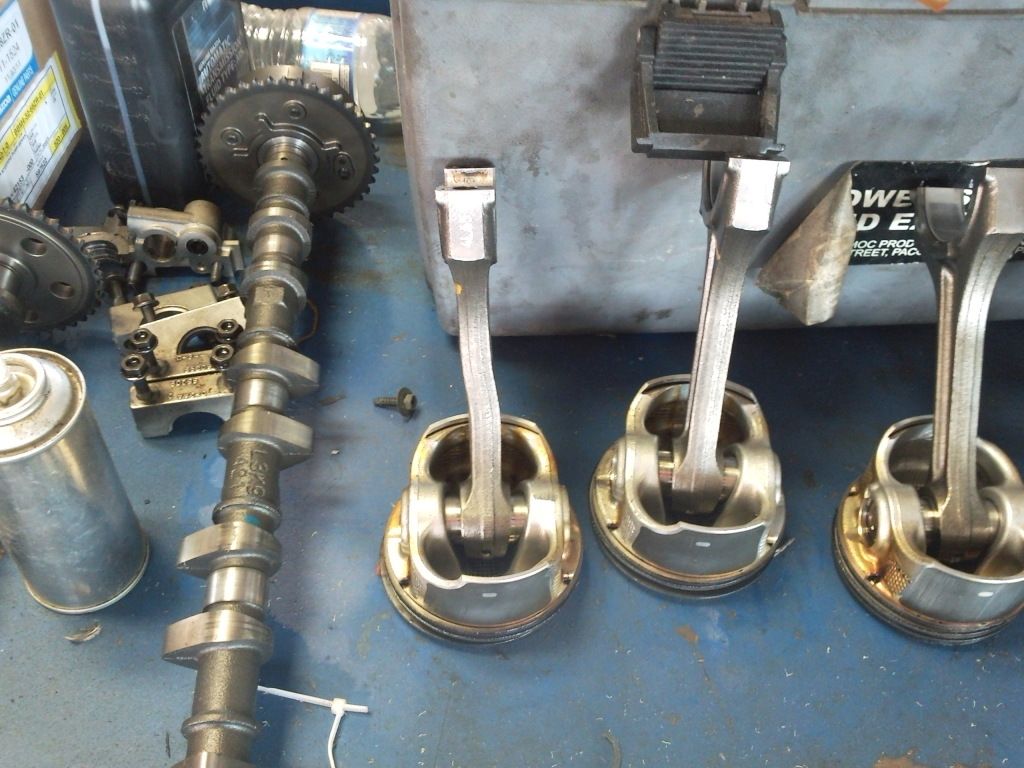 yeah, that doesn't look like the pistons are pitted, just the carbon buildup on the top of 'em starting to break off. btw, nice organization on the cam caps, lmao. |