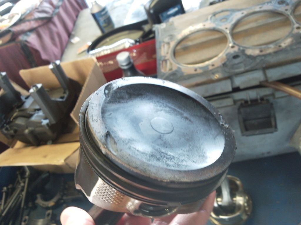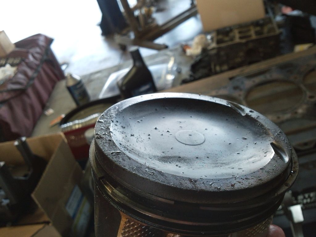 Pitted Piston Heads So, I bent a rod and am in the process of getting the engine rebuilt. I have some pitting in the top surface of the piston heads (two are worse than the other two) and no one knows for sure what would cause this. There’s no damage to the head or valves so it’s unlikely that something got sucked into the intake. Could this be because of my tune? I’m getting a pro tune with the rebuild to be on the safe side. We would just like to know if anyone has seen this before and knows something we should be watching for regarding the hardware. http://i1258.photobucket.com/albums/...5/1511be03.jpg http://i1258.photobucket.com/albums/...5/c2515b43.jpg http://i1258.photobucket.com/albums/...5/aa91efcd.jpg http://i1258.photobucket.com/albums/...5/a2ceaff9.jpg I open the floor to the more experienced of the forum. Possibly pertinent information: I was running a tune that I evolved over several iterations using Abilor’s Tuning Guide, based on a Cobb stage 2 map. I was targeting 19 psi boost on stock internals but with other supporting mods (see sig). MAF cal was verified (repeatedly) and I had been running this map for close to a year. I had not touched the timing, but there’s a known issue with the VVT on the MS6. There was no other catastrophic internal damage to the engine. The block is getting bored out 20/1000ths for some scoring on the #2 cylinder wall. Just bought the hardware for the rebuild and waiting for delivery. Bonus pic: http://i1258.photobucket.com/albums/...5/5e4ff31c.jpg |