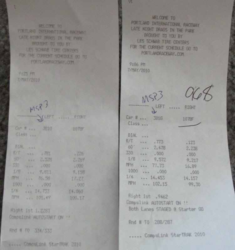 | Not Ranked : 0 score Did anyone notice that even though the times for the MS3 were consistently much slower, it still ran a higher trap speed, lol. Once, he ran a 14.73, then a 14.45. He had 2.5 60' times. Why the hell would you even brag about beating someone that was that bad of a driver? Whatever dude, SI stands for Slow Indeed.
