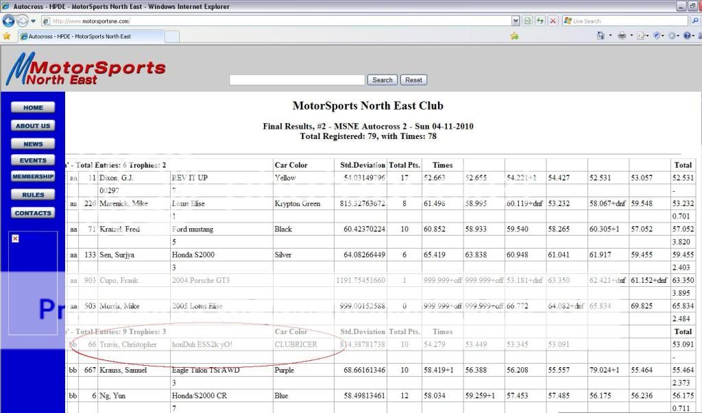 | Not Ranked : 0 score Still no word from him regarding a drag race. I offered to pay alot of his finances, He just needs to bring his bolted si. Im running 291 whp on conservative mustang dyno tuned by Tim Bailey-A premier Cobb Tuner...if he beat me that would give him huge bragging rights!..But yet no answer so far..why am I not surprised. |