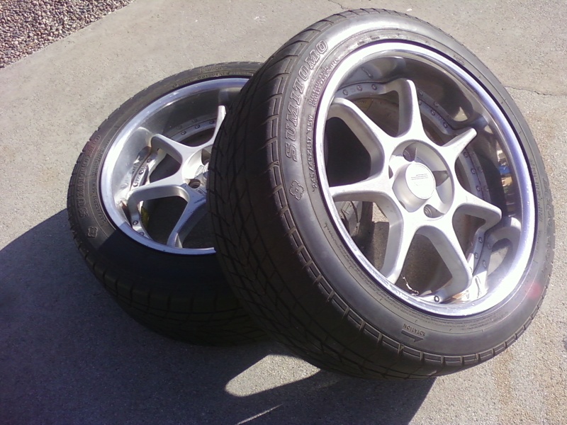 very nice... I just picked up some old Enkei RS evolution wheels... 3pc.. they need to be refinished, but they were a great deal. look just like these.. but super dirty.. http://derrickrivera.com/enkeirsevol...729101722a.jpg hah - I dont even know they width.. the wheels are in that bad of shape.. I'm guessing 17x8, although the ones in the pic above are 17x9, & they look just like what I have.. heh ill let you know after I refinish them.. |