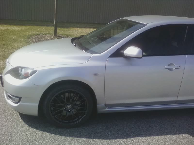 tirerack is sending me a new set of wheels/tires and should be here tomorrow once i get them on ill snap a few pics with my cheap diggy cam. the rims arent as dark as this picture seems. For instance you can hardly if at all tell that i do have mud flaps on in the picture. |