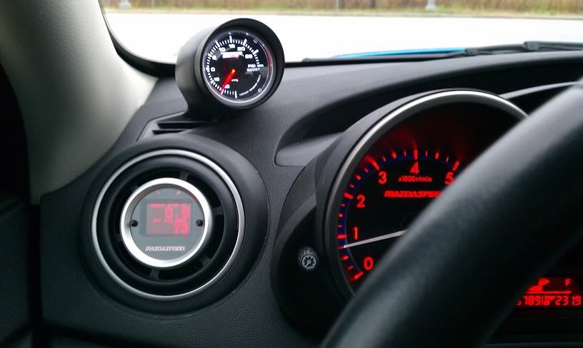 He can give you more details on manufacturing. And the link to the group buy thread (I think mazda3revolution or m247). I'm on my phone but I can post it later. Just be aware that if you have s regular prosport gauge, the ones that are $38/$55 are longer than usual and will require an extended pod. I have the premium series in my picture, which is considerable thinner as it has a stepper motor. These are electric only though. |