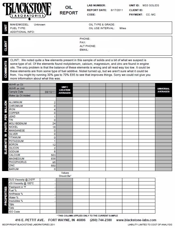 The high amounts of magnesium and zinc make me think it's eating something; not sure what the calcium would be from though. *Toodles off to find chemical formulae for fuels and additives* |