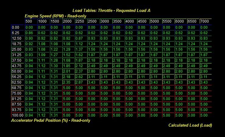 @silvapain Would you mind posting a screenshot of Your Calc Load Max A and B table, a normal trx table, and a throttle requested table.? I know its a pain in the ass to post those screenshots and I know you stated the values are the same, but it would help me a ton if you could do that. Thanks!!! @rfinkle2 yes I know it uses the lowest value but the Calc Max Load tables per the Cobb Helpfile do not disclose a relationship between these tables and all other tables. It discusses the Calc Max Load tables having a direct and seperate relationship on fueling. |